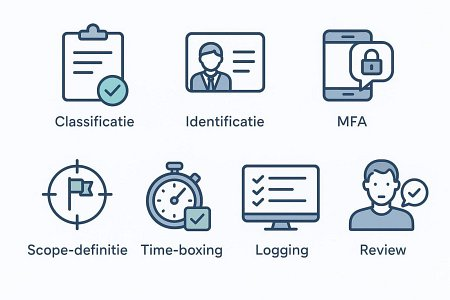 Scope-specifieke toegang maakt het makkelijker om aan compliance-eisen te voldoen. Omdat toegang standaard is beperkt en elke actie wordt vastgelegd, is het bewijsmateriaal dat toezichthouders vragen direct beschikbaar. Waar de AVG “dataminimalisatie” voorschrijft, zet scope-specifieke toegang dit om in techniek: de leverancier ziet alleen de strikt benodigde data.